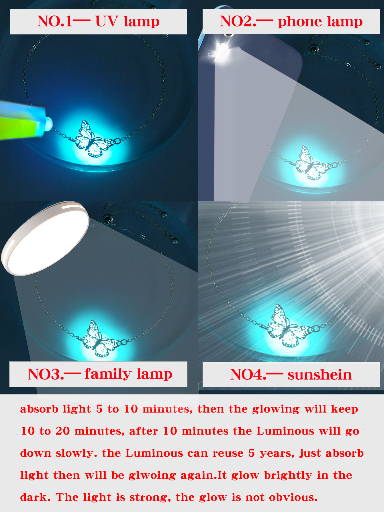 Glow Butterfly Drop Pendant Bracelet